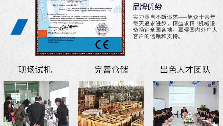 安徽旭眾智能科技有限公司是一家集科研開發(fā),生產(chǎn)設(shè)計(jì),營(yíng)銷服務(wù)為一體的現(xiàn)代化生產(chǎn)企業(yè)?,F(xiàn)代化生產(chǎn)車間,精湛制造技術(shù),所產(chǎn)機(jī)械歷經(jīng)市場(chǎng)重重考驗(yàn),不斷贏得海內(nèi)外客戶的贊譽(yù)。