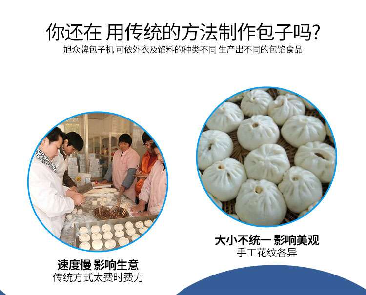 ◆制品多樣化,可生產(chǎn)各種肉包、肉菜包、菜包、小籠包、湯包、水晶包、圓饅頭、奶黃包、豆沙包、叉燒包、南瓜餅等幾十種包餡制品。