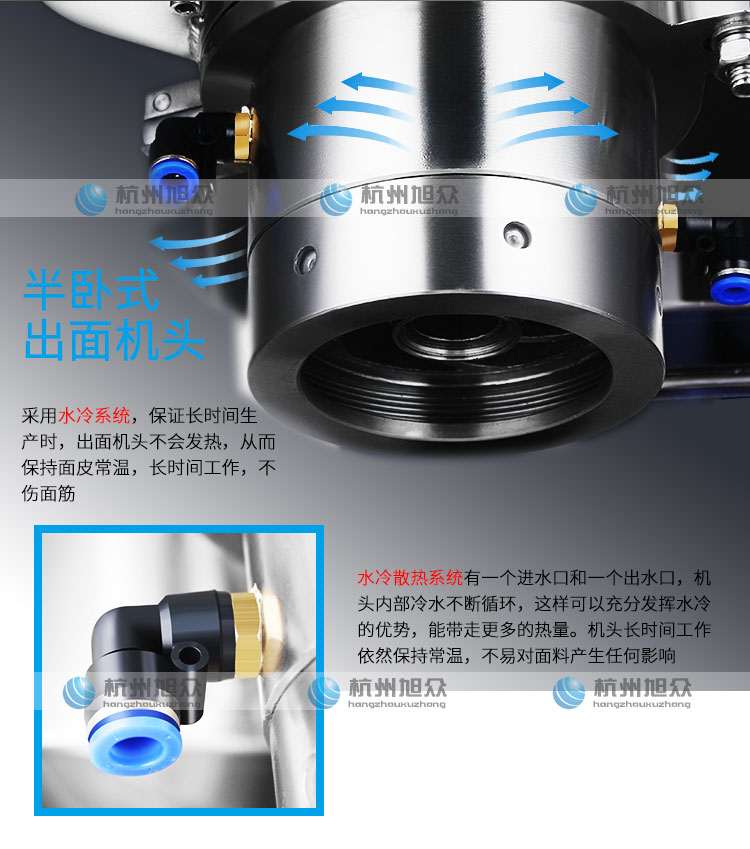 ◆出面系統(tǒng):采用單攪龍 ,大螺徑【北方機(jī)器由于加工手段受限一般攪龍很小需要轉(zhuǎn)速很快才能出料】半臥式出面方式。可以在擠相同分量面皮與小攪龍相比的情況下,大大降低攪龍轉(zhuǎn)速 ,讓面皮出料壓力小,達(dá)到揉面的效果,不傷面筋,口感一流!并配正副攪龍以保證出面均勻。
