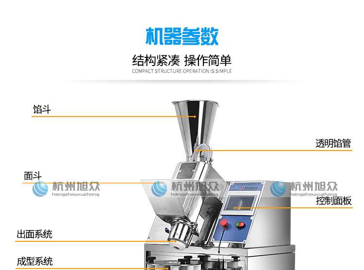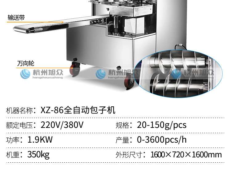 旭眾牌XZ-86全自動(dòng)包子機(jī)體積小重量輕,外殼及接觸食品部分均由不銹鋼制造,外觀精美耐用;采用三變頻無極變速調(diào)控,生產(chǎn)性能穩(wěn)定精準(zhǔn)。設(shè)計(jì)先進(jìn),結(jié)構(gòu)簡(jiǎn)單,操作方便。獨(dú)有的三大特色: