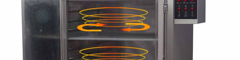 本運(yùn)風(fēng)箱分水平對(duì)流式和上下對(duì)流式兩種。工作室較小的采用水平對(duì)流式,發(fā)熱部分在上部,工作室較大的則采用上下對(duì)流式,發(fā)熱部分在上部。電機(jī)安裝在上部或后部,通過帶動(dòng)風(fēng)輪將熱量流通到工作室,如此循環(huán)。