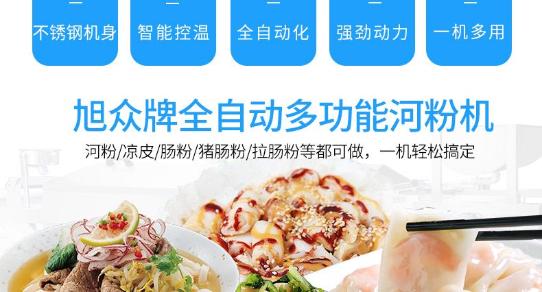 ◆一機多用:多功能河粉機器可生產(chǎn)制作河粉、腸粉、涼皮、面皮、米皮、粉皮、切粉、粿條等。