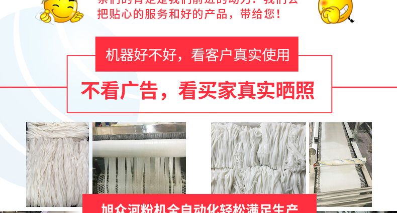 本公司推出的高效節(jié)能河粉機技術(shù)先進、品質(zhì)領(lǐng)先。該河粉機既傳承民間的河粉制作工藝,使之保留并超越原有風味,又引進先進的食品加工技術(shù),大大提升了生產(chǎn)效益。廣大客戶使用高效節(jié)能河粉機后一直贊譽:該機是河粉機中的科技典范,旭眾憑借其品質(zhì)與優(yōu)良服務(wù),是用戶的優(yōu)選選擇。該機一機多用,可根據(jù)需求定制河粉、涼皮、拉腸粉、豬腸粉等功能。